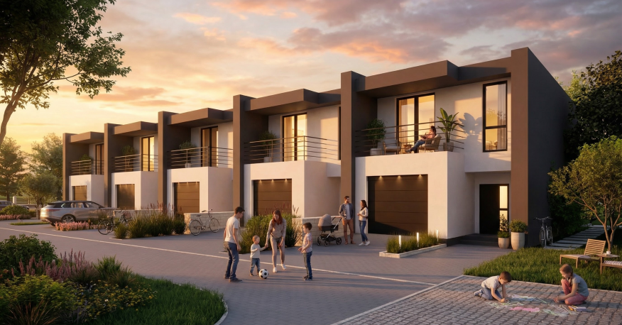 Panorama Gołonoska to kameralne osiedle domów w zabudowie szeregowej. Inwestycja powstanie w dwóch etapach – pierwszy 4 domy, które będą gotowe do obioru i jeszcze w tym roku. Kolejny etap, w ramach którego powstaną 3 domy, ruszy niebawem i będzie gotowy pod koniec roku 2027. Zaprojektowane w przemyślany sposób wnętrze łączy funkcjonalność z wygodą użytkowania przyszłych właścicieli. o idealna propozycja dla rodzin, które chcą połączyć komfort domu z wygodą miasta.